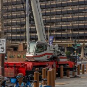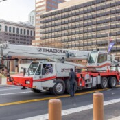 Given the complexity of the the lift, Thackray Crane deployed one of its Liebherr LTM 1400-7.1 all terrain cranes, a 500-ton powerhouse built to handle heavy and intricate lifts in challenging locations. The crane’s flexibility and capacity were critical to safely navigating tight city streets and maneuvering the equipment into position more than a dozen stories above busy sidewalks and traffic.