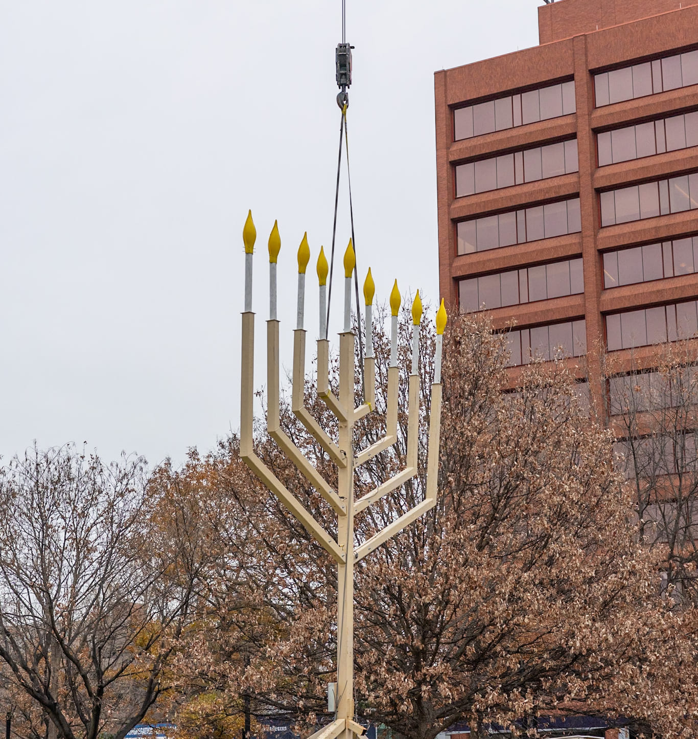 As with many of our projects, success started well before the crane was set. Thackray Crane handled both the transportation and lifting for the menorah installation.