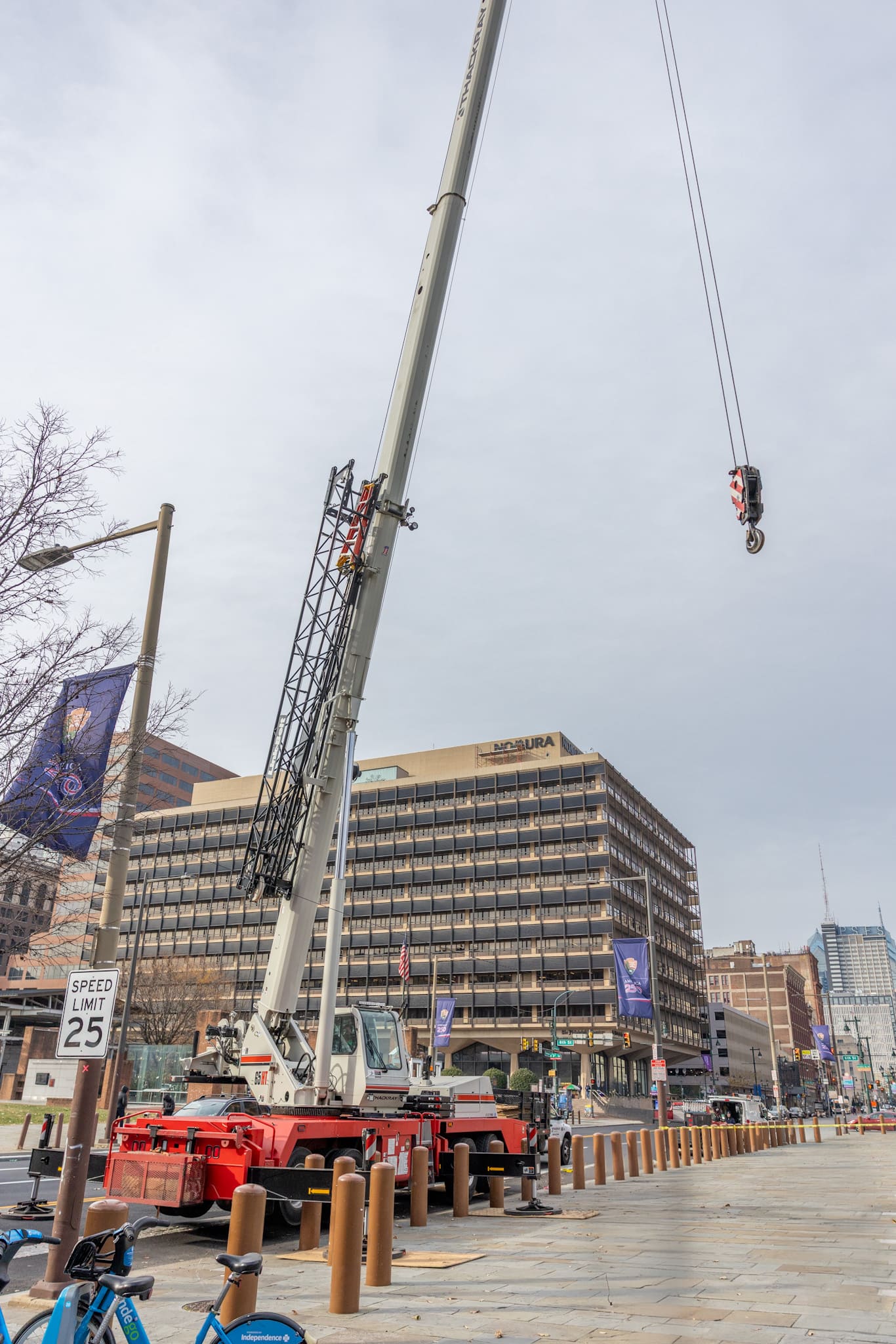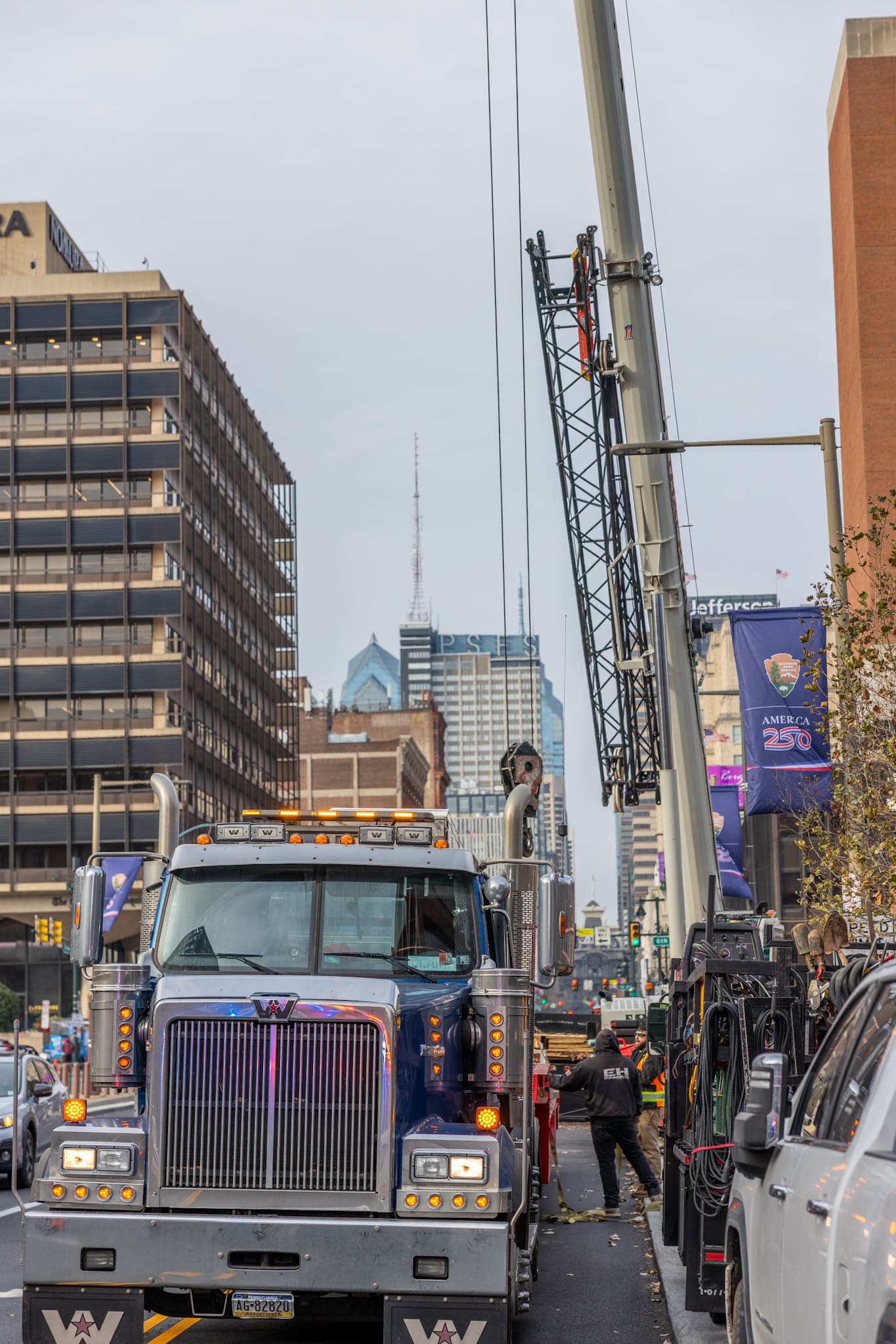 This year’s menorah installation took place at Independence Mall on 6th Street between Market and Arch, adjacent to the Independence Visitor Center and just steps from the Liberty Bell. Working in such a high-profile, high-traffic area requires careful planning, precise coordination, and experienced operators who understand the importance of doing the job safely and efficiently.