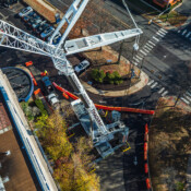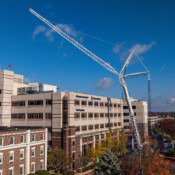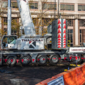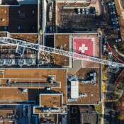 Operating within an active hospital campus requires precision and absolute attention to safety. To reach the Toll Pavilion rooftop while maintaining proper clearances and stability, Thackray deployed our 500-ton Liebherr LTM 1400-7.1.
